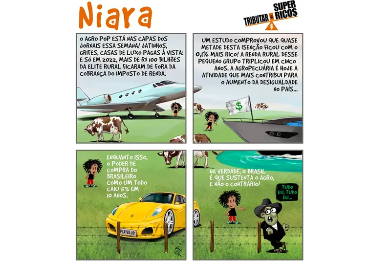 “Os quadrinhos são uma das ações da campanha para tornar o conteúdo tributário mais fácil de ser compreendido e mostrar que fazer justiça fiscal é uma mudança crucial e necessária para promover maior distribuição de renda e assegurar um país mais justo”, enfatiza a professora e diretora da Confederação Nacional dos Trabalhadores da Educação (CNTE), Rosilene Corrêa, outra entidade engajada na campanha.