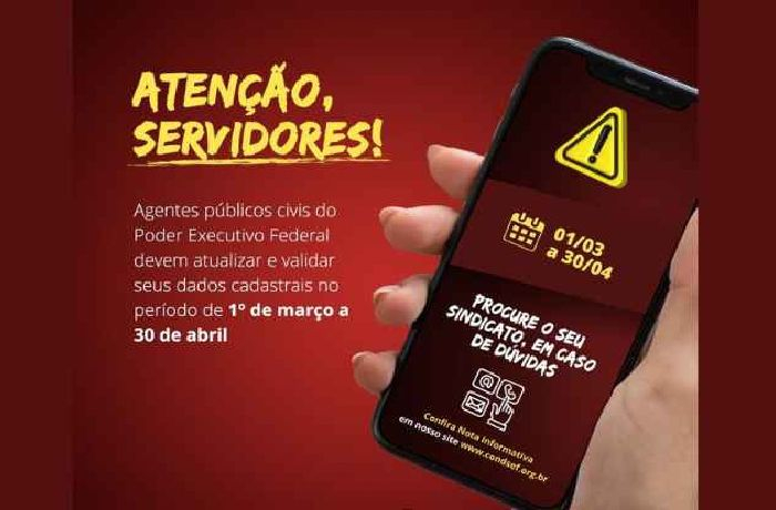 A atualização deve ser realizada por meio da plataforma SouGov.BR. Entidades filiadas à Condsef/Fenadsef estão disponibilizando auxílio àqueles servidores e servidoras que tiverem qualquer dúvida quanto ao processo. Se precisar de ajuda, procure o sindicato em seu estado.