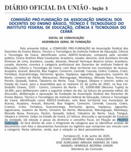 Neste momento, esta mesma entidade que atua contra os docentes está tentando se estabelecer no Ceará através de um golpe, criando uma associação com o real objetivo de criar um sindicato de base intermunicipal.