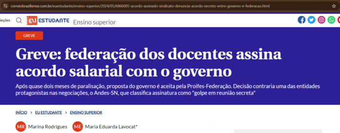 A decisão golpista do Proifes foi notícia nacionalmente, no Correio Braziliense e no Brasil de Fato. Nas notícias, foi destacada a proposta do SINASEFE e ANDES, de reajuste de 7,06% ainda em 2024, de 9% em janeiro de 2025, e de 5,16% para 2026, valor superior ao assinado pelo Proifes.
