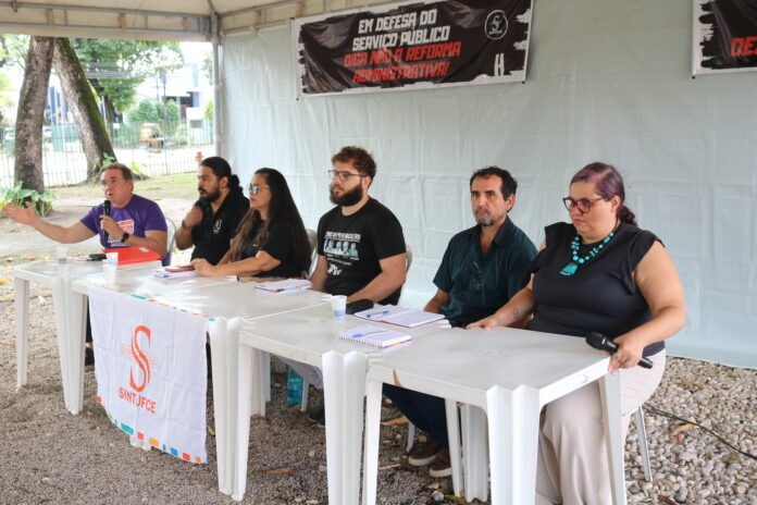 O debate aconteceu durante a paralisação dos servidores técnicos-administrativos da UFC, realizada nos dias 29 e 30 de julho, integrando-se a uma agenda nacional de lutas convocada pela Federação de Sindicatos de Trabalhadores Técnico-Administrativos em Instituições de Ensino Superior Públicas do Brasil (FASUBRA).