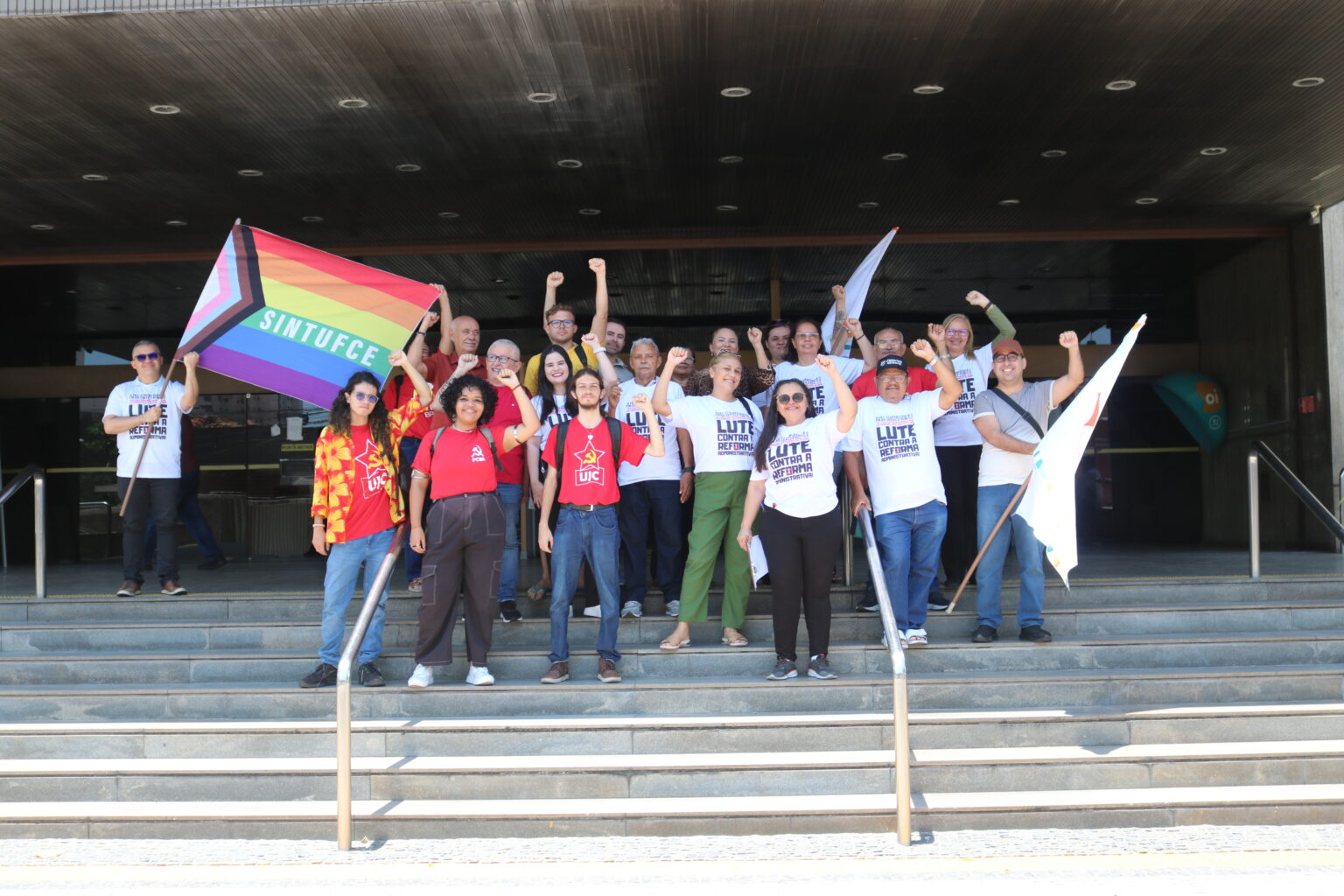 O SINTUFCE organizou na manhã desta quarta-feira, 10 de setembro, um ato público em frente ao prédio onde funciona a sede do Ministério da Gestão e da Inovação em Serviços Públicos (MGI) em Fortaleza.